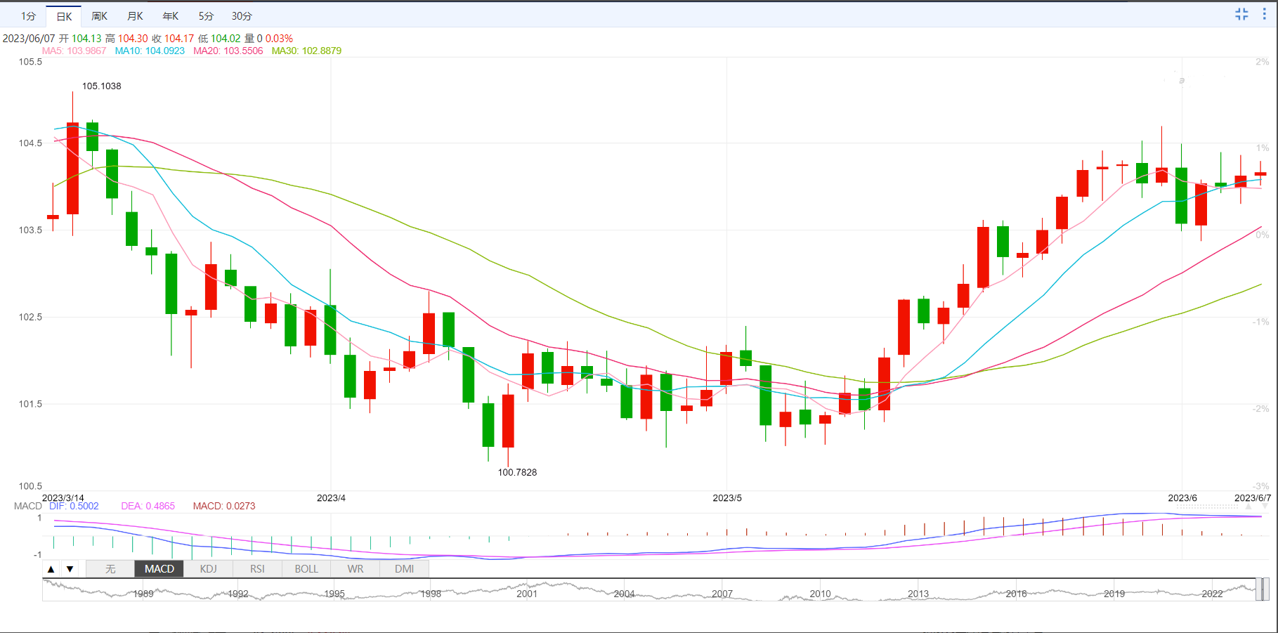支撑位:103.83 103.65 103.36