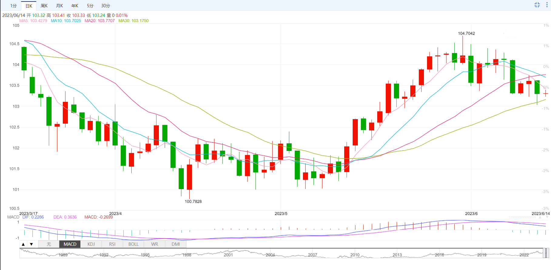 支撑位:103.01 102.73 102.41