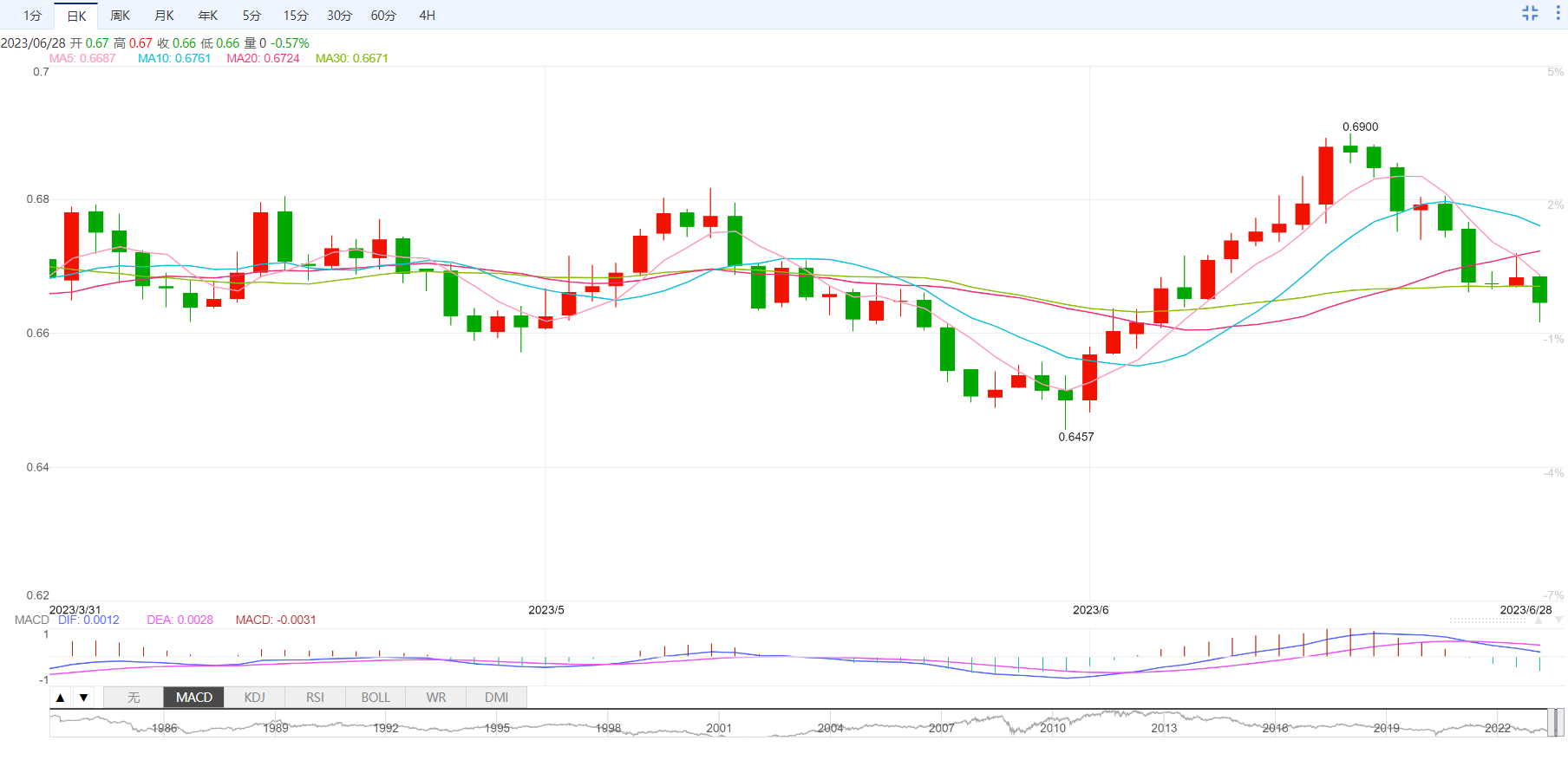 澳元/美元面临巨大的卖压,并跌至愈三周低点0.6620-0.6615区域附近。不过,澳元/美元终于收复大幅下跌后的部分跌幅,目前交易价格略低于0.6600点,当天仍下跌0.65%。澳元/美元在5-6月涨势的61.8%斐波那契回撤位以下维持一定弹性,因为美联储主席鲍威尔讲话前市场转为观望。同时,日线图技术指标刚刚开始进入负区,支持进一步下跌的前景。此外,若澳元/美元持续跌破0.6675区域(即50%斐波那契位),将对空头有利。