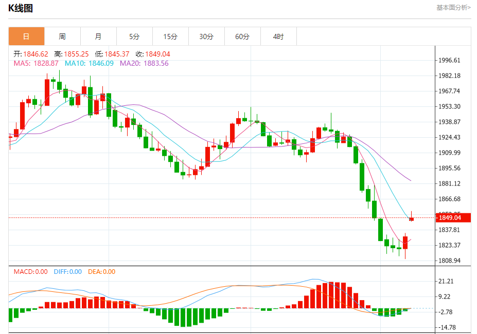 现货黄金:截止北京时间20:21,现货黄金上涨,现报1848.92,涨幅0.95%。纽市盘前,黄金价格今天以看涨缺口开盘,价格高于1838.35水平,这导致价格回升,并试图实现从测试1873.50水平开始的收益,使今天的看涨偏见。