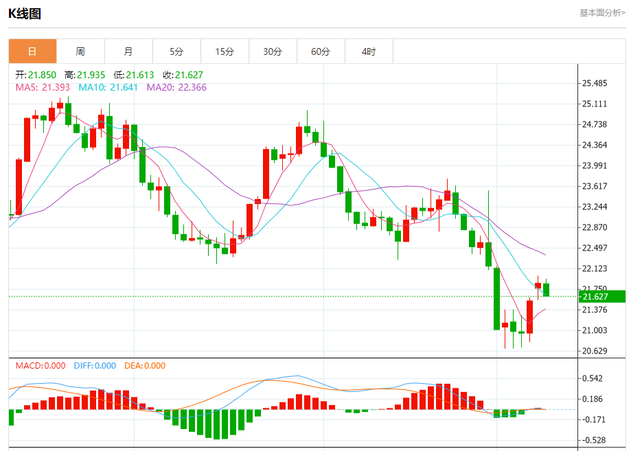 现货白银:截止北京时间20:21,现货白银下跌,现报21.630,跌幅1.01%。纽市盘前,白银价格继续在横盘轨道内波动,在EMA50附近徘徊,这使看涨趋势情景保持有效,因为它今天没有任何变化,等待收集积极的动力,推动价格达到我们在22.25的预期目标,提醒你保持在21.35以上对继续预期的看涨趋势很重要。
