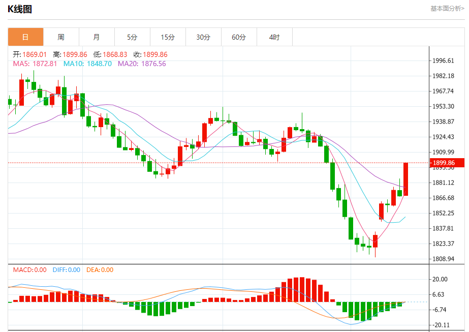 现货黄金:截止北京时间20:24,现货黄金上涨,现报1900.24,涨幅1.69%。纽市盘前,黄金价格交易明显积极远离1873.50水平,加强了今天剩余时间内继续看涨趋势的预期,实现我们等待的主要目标1913.15的道路是开放的。