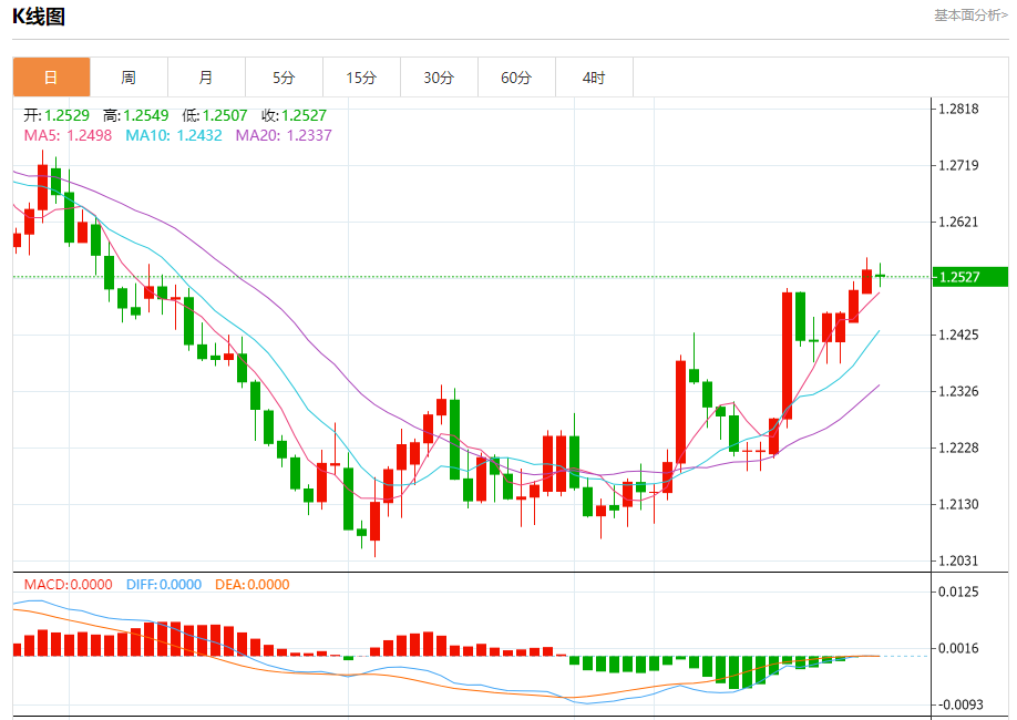 英镑/美元:截止北京时间21:16,英镑/美元下跌,现报1.2529,跌幅0.08%。纽市盘前,自上午以来,GBPUSD货币对没有表现出任何强劲的走势,并继续在1.2540水平附近波动,这使得看涨趋势情景有效,因为今天没有任何变化,这取决于价格稳定在1.2460和1.2430水平以上,而其目标从1.2590开始,并在近期基础上延伸至1.2720。