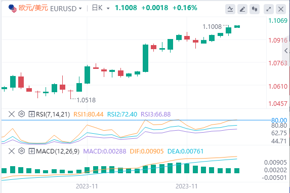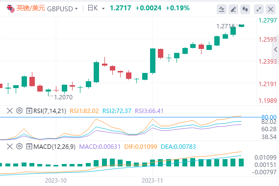 欧元:截止发稿,欧元/美元徘徊于1.1008附近。昨日欧元/美元周二上涨,收报1.0990,涨幅0.4%。欧央行官员远未宣布战胜通胀。不过,市场正在对明年第二季度的降息进行定价。本周三,西班牙和德国将公布11月消费者通胀,这将至关重要。预计11月西班牙消费者价格指数年率将从10月的3.5%下降到3.4%,德国通胀年率将从3.8%下降到3.5%。即使放缓,消费物价指数仍将高于目标值,经济学家警告说12月通胀可能出现反弹。技术面上,汇价上行的初步阻力位于1.1024,进一步阻力位于1.1054,关键阻力位于1.1099;汇价下行的初步支撑位于1.0949,进一步支撑位于1.0904,更关键支撑位于1.0874。
