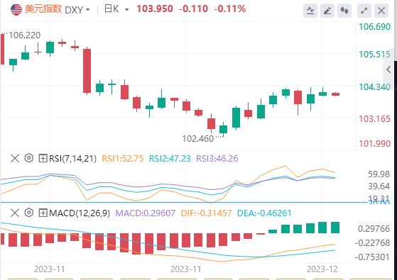 美元/日元从146.20附近的早期高点回落70点左右,至145.50左右。美元疲软在其他地方也有所延续。澳元、新西兰元、加元、瑞士法郎和GP兑美元均上涨。欧元是一个落后者。截止目前,美元报价103.95。