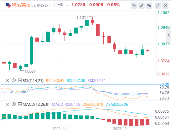 美国11月消费者价格指数(CPI)年率上升3.1%,符合预期。剔除波动较大的食品和能源价格的核心CPI通胀率同期稳定在4%,符合市场共识。美元指数(USD)随着CPI读数的即时反应而剧烈波动,随后稳定在104.00以下。与此同时,基准10年期美国国债收益率回落至4.2%区域,华尔街主要指数收于正值。周三早盘,10年期国债收益率继续在4.2%附近波动,美元指数在104.00附近横盘整理。市场普遍预计美联储将维持5.25%-5.5%的政策利率不变。投资者将密切关注点阵图,试图找出明年政策转变的时机。