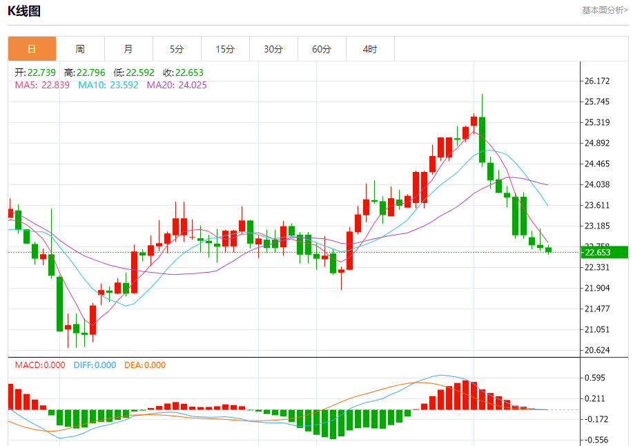 现货白银:截止北京时间21:27,现货白银下跌,现报22.705,跌幅0.16%。纽市盘前,银价继续下跌支撑今天预期的看跌趋势的延续,途径是开放的,以实现22.25的主要等待目标,由EMA50支撑,提醒您,熊市波的延续取决于23.00下方的价格稳定。