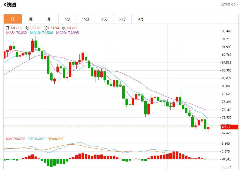 原油市场:截止北京时间21:27,美油上涨,现报69.201,涨幅0.68%。纽市盘前,原油价格提供了额外的负面交易,并试图超过68.00美元的障碍,但它显示出一些受随机利好影响的看涨偏见,等待获得负面动机,以帮助推动价格恢复主要的看跌趋势,目标是67.04作为下一站。