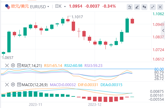 周四,欧洲银行(ECB)一如预期维持主要利率不变,并下调了通胀预期。不过,欧洲央行在政策声明中重申,未来的决策将确保"只要有必要",政策利率将被设定在足够限制性水平。在会后的新闻发布会上,欧洲央行行长克里斯蒂娜-拉加德(ChristineLagarde)指出,他们没有讨论降息问题,并补充说现在还不是放松警惕的时候,因为他们还有更多的工作要做。拉加德的鹰派论调提振了欧元,使欧元/美元升至1.1000以上的多周高位。截至记者发稿时,该货币对在略低于这一水平的位置巩固了本周涨幅。