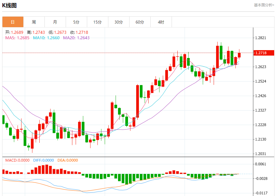英镑/美元:截止北京时间21:20,英镑/美元上涨,现报1.2720,涨幅0.23%。纽市盘前,GBPUSD对提供了积极的交易来测试关键阻力1.2720,这促使人们在即将到来的交易中保持谨慎,因为价格需要保持在这一水平以下,以保持熊市趋势的活跃,这是由现在明显出现的随机消极因素支持的,提醒你我们主要等待的目标位于1.2590。