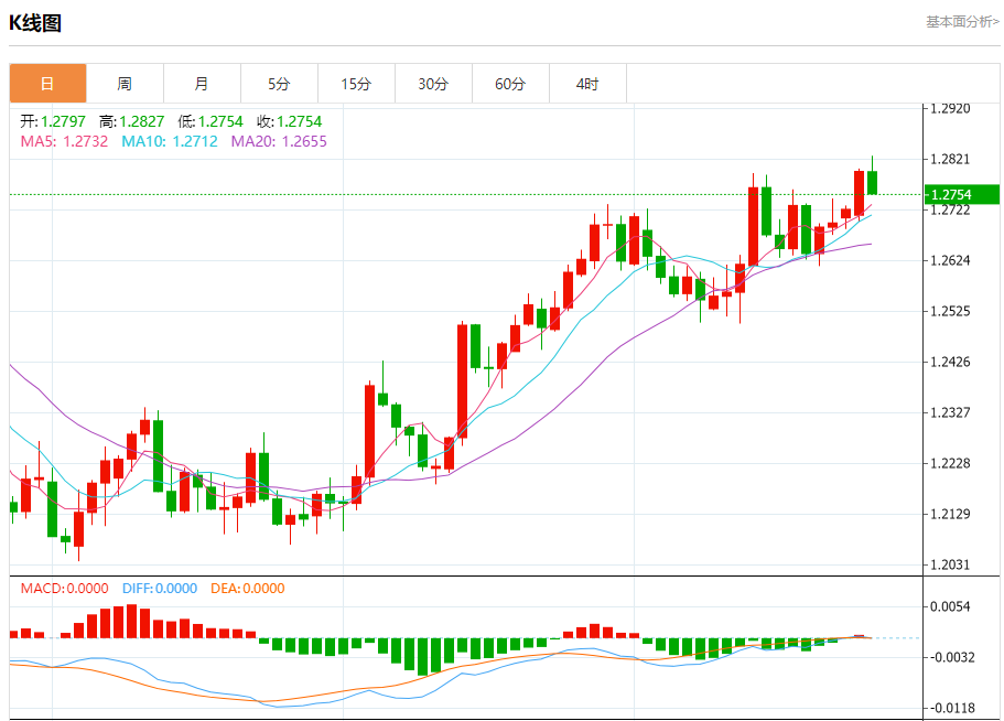 英镑/美元:截止北京时间21:20,英镑/美元下跌,现报1.2755,跌幅0.34%。纽市盘前,受随机利空的影响,GBPUSD对现在显示出一些轻微的看跌倾向,等待获得积极的动机来加强继续主要看涨趋势的预期,提醒你我们正在等待访问1.2880作为下一个主要目标。
