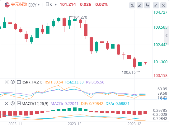 1)美元:美指自11月以来一直遭受打击,虽然大趋势仍偏向于下行,但有人可能会说,美元正走向短期支撑区,这可能意味着在超卖的技术条件的一些防守任何反弹的尝试也可能支持其日线图MACD形成看涨背离。100.50水平可能是近期需要守住的支撑位,接下来是99.15水平。