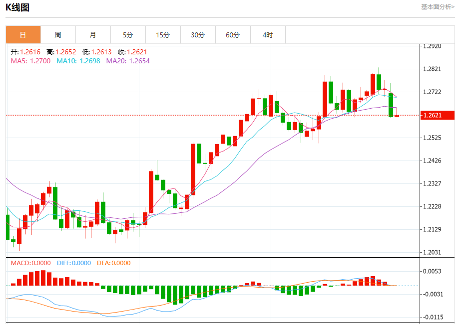 英镑/美元:截止北京时间21:20,英镑/美元上涨,现报1.2623,涨幅0.05%。纽市盘前,受随机利好影响,GBPUSD对现在显示出一些轻微的看跌倾向,等待获得负面动机,以帮助推动价格恢复今天的预期看跌趋势,目标是最初测试1.2590,注意到突破该水平将延长熊市波,达到1.2460作为下一个负站,而预期的下跌将保持有效,除非突破1.2720并保持在1.2720以上。