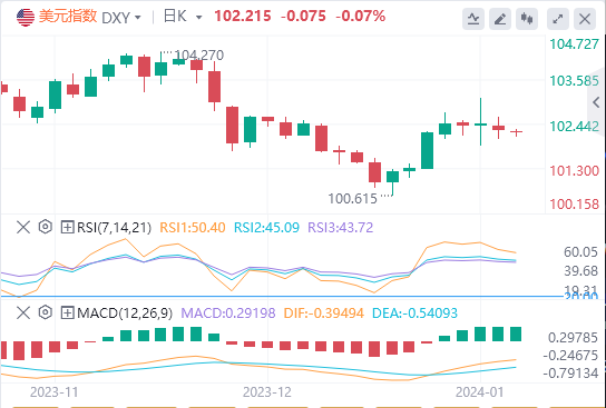 美元在盘中几乎全线走弱,日元涨幅显著。澳元/美元上涨,其他外汇对美元也上涨。截止目前,美元报价102.215。