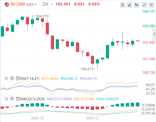 周三亚盘,黄金交投于2030.79附近。尽管美元在周三亚洲早盘时段反弹,但黄金价格仍保持积极地位。周五强于预期的美国劳动力数据提振了美元需求。尽管如此,本周的通胀数据将非常重要。美元指数从12月下旬的低点反弹至102.50。美国12月通胀数据将是重头戏。整体消费者物价指数(CPI)预计将同比增长3.2%,而核心CPI预计将从前值的4.0%回落至3.8%。如果数据强劲,这可能会提振美元,并打压以美元计价的黄金。