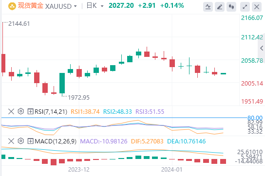 周四亚盘,黄金交投于2027.20附近。周四亚盘黄金走高,在周四公布关键的美国消费物价指数报告之前,美元疲弱为黄金提供了一些支撑。美元指数跌至102.35。美国国债收益率走低,10年期美国债券收益率为4.03%。纽约联邦储备银行(Fed)行长约翰-威廉姆斯(JohnWilliams)周三表示,现在呼吁降息还为时过早,因为美联储在将通胀率上调至2%的目标水平方面仍然面临挑战。威廉姆斯进一步表示,美联储将需要在一段时间内保持限制性政策态势,以全面实现目标,货币政策决策将在每次会议上做出,同时会顾及将经济数据、不断变化的经济前景以及风险平衡。