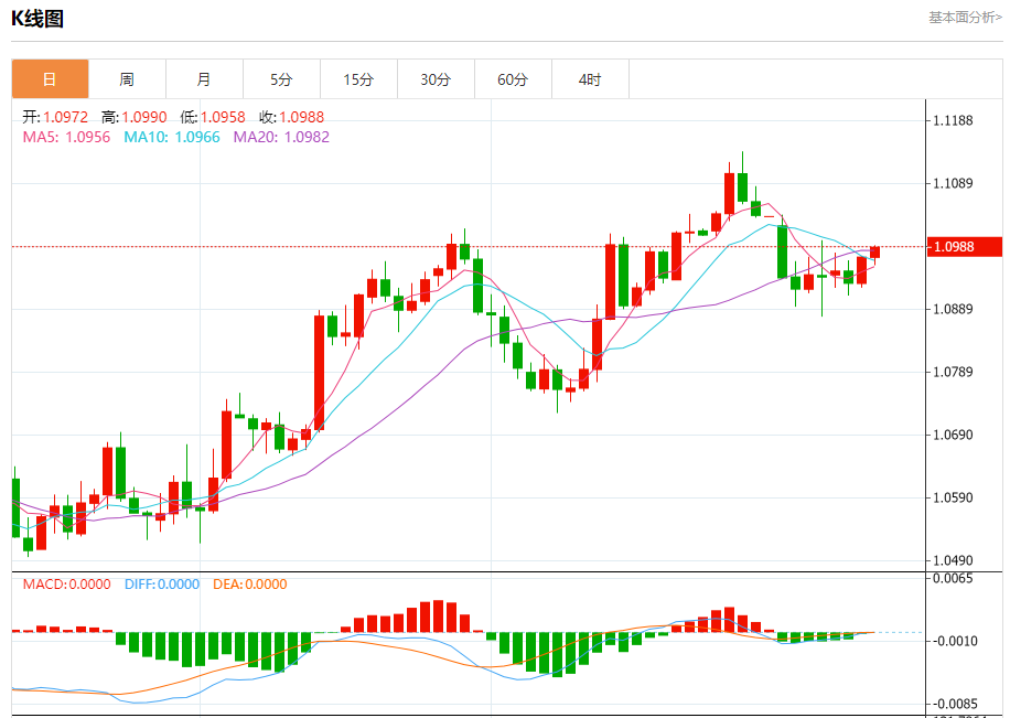 欧元/美元:截止北京时间21:20,欧元/美元上涨,现报1.0987,涨幅0.13%。纽市盘前,欧元兑美元仍然卡在1.0960支撑位和1.0995阻力位代表的趋势关键点之间,这使我们的中性观点一直有效,因为价格需要超过其中一个水平才能清楚地发现其下一个目标。