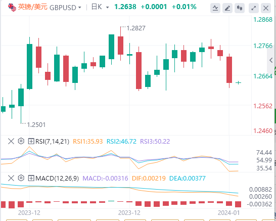 英镑:截止发稿,英镑/美元徘徊于1.2638附近。昨日英镑/美元下跌,收报1.2635,跌幅0.71%。在周二的劳工数据公布后,市场对英国央行降息的广泛押注趋于稳定,货币市场目前预计英国央行到2024年将降息134个基点。技术面上,汇价上行的初步阻力位于1.2755,进一步阻力位于1.2786,关键阻力位于1.2807;汇价下行的初步支撑位于1.2703,进一步支撑位于1.2681,更关键支撑位于1.2651。