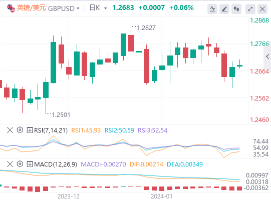 英镑/美元走势较好,坚守在1.2700附近,受到英国通胀数据火热的支撑,这有助于降低英国央行在今年上半年降息的可能性。