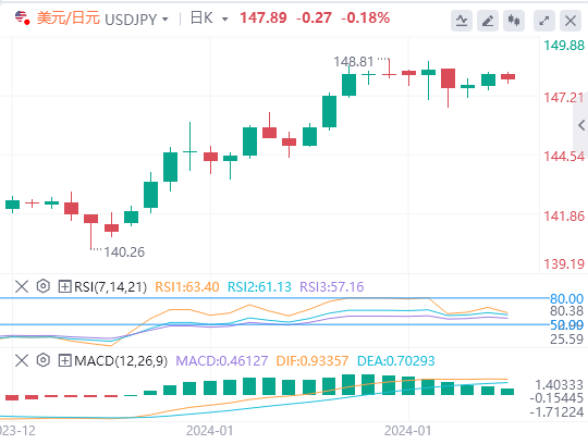 继前一周举棋不定的走势之后,美元/日元周一小幅走低,略低于148.00。周二亚洲时段,日本12月失业率数据将为市场带来新的动力。