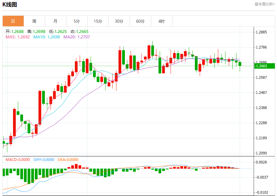英镑/美元:截止北京时间21:21,英镑/美元下跌,现报1.2666,跌幅0.14%。纽市盘前,GBPUSD对再次测试关键支撑位1.2645,并对其施加负面压力,这促使人们在即将到来的交易中保持谨慎,因为价格需要保持在这一水平以上,以保持看涨趋势在即将到来的时期内有效,这受到随机当前积极性的支持,其下一个目标位于1.2825。