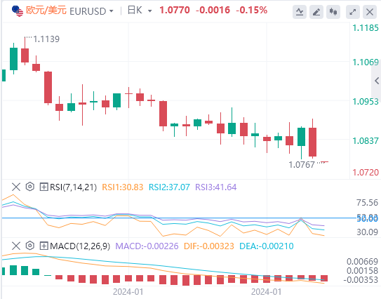 欧元:截止发稿,欧元/美元徘徊于1.0770附近。欧元/美元周五下跌,收报1.0786,跌幅0.79%。尽管美元随市场情绪不断波动,但欧元显然受到宏观经济困境的影响更大。德国和欧元区公布各自的第四季度国内生产总值(GDP)初值。第四季度德国经济收缩了 0.3%,而同期欧盟经济增长持平。技术面上,如果欧元/美元设法从当前位置反转走高,则技术阻力位从1.0840延伸至1.0860。高于这一关键区间,市场焦点可能会集中在50日简单移动平均线1.0915,然后是1.0950。