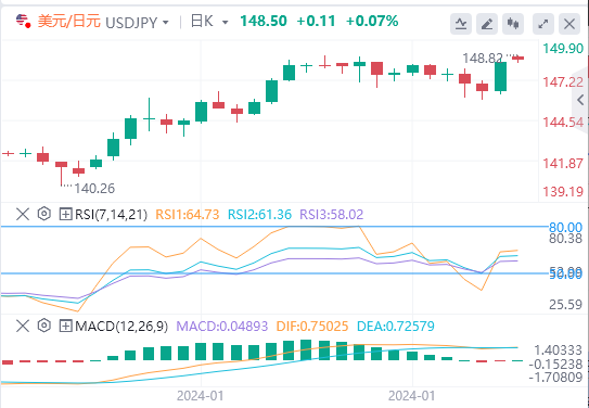 美元/日元周一在亚洲时段走高,触及149.00,创下11月下旬以来的最高水平。然而,由于日元受益于风险情绪恶化,该货币对回落至148.50以下。
