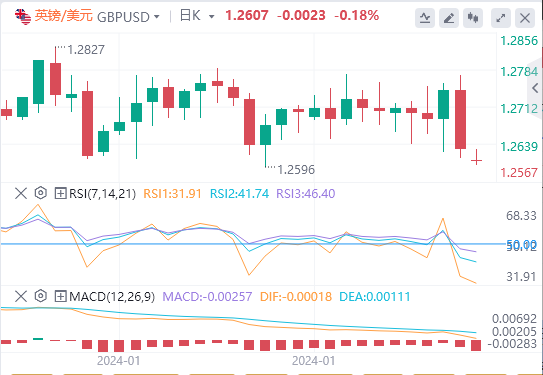 英镑/美元在上周五下跌0.9%后继续下跌至1.2600。英国央行首席经济学家Huw Pill将于格林威治标准时间周一17:30参加在线问答。