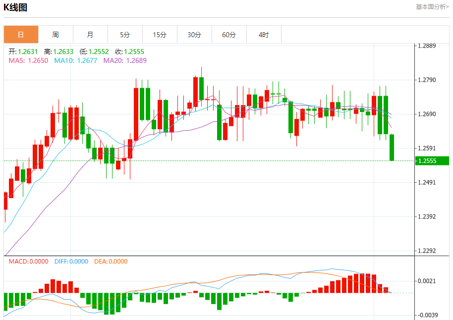 英镑/美元:截止北京时间21:25,英镑/美元下跌,现报1.2556,跌幅0.62%。纽市盘前,GBPUSD对稳定在1.2645水平以下,以保持修正看跌情景在即将到来的时期有效,目标是1.2540作为下一站。