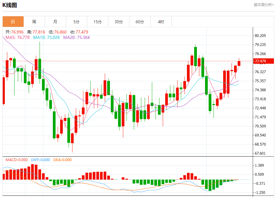 原油市场:截止北京时间21:15,美油上涨,现报77.481,涨幅0.73%。纽市盘前,原油价格现在显示出明显的积极交易,接近我们等待的目标77.86,我们预计牛市将继续突破这一水平,并在接下来的时期朝着实现额外收益的方向反弹,向代表我们下一个主要目标的80.00前进。