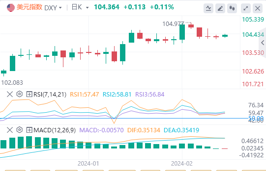 今日亚盘美元上涨了几点。欧元/美元、澳元/美元、纽元/美元、英镑/美元,而美元/加元和美元/瑞郎上涨。截至目前,美元报价104.364。