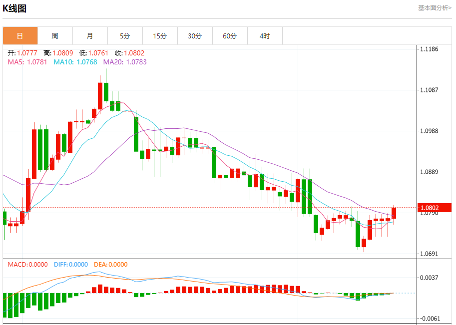 欧元/美元:截止北京时间21:12,欧元/美元上涨,现报1.0803,涨幅0.24%。纽市盘前,欧元兑美元汇率在试图脱离1.0765水平时显示出一些轻微的看涨倾向,以保持今天的看涨趋势情景活跃,受到随机触及超卖区域的支持,等待访问1.0860作为下一个主要目标,提醒您保持在1.0765以上以继续预期的上涨是重要的。