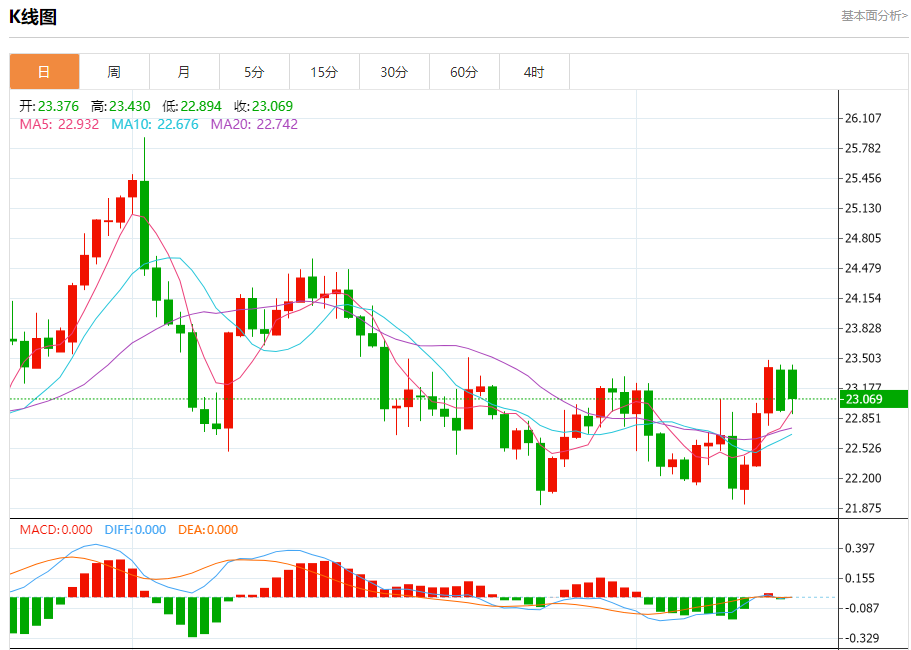 现货白银:截止北京时间21:12,现货白银下跌,现报23.071,跌幅1.42%。纽市盘前,白银价格试图超过23.00水平,并再次在此上方交易,这加强了对今天剩余时间继续看涨趋势的预期,这是由四小时时间框架中出现的随机利好推动的,提醒您我们正在等待访问23.70作为下一个主要目标。