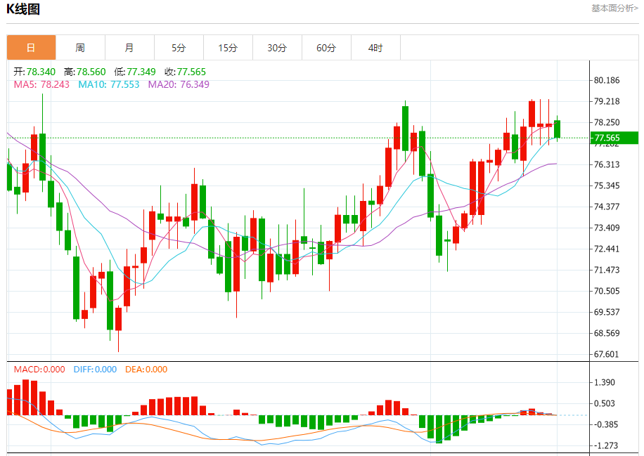 原油市场:截止北京时间21:12,美油下跌,现报77.531,跌幅1.18%。纽市盘前,自上午以来,原油价格在窄幅和横盘区间内波动,只要价格高于77.86,我们的看涨观点今天就将保持有效和活跃,受到EMA50的支持,这加强了在即将到来的时期实现更多收益的机会,提醒您我们的预期目标从79.15开始,然后是80.00。