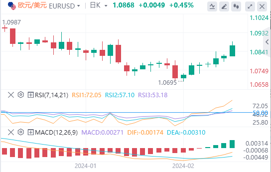 欧元/美元获得看涨势头,周四早盘攀升至1.0850,在此过程中跌至近三周来的最高水平。欧元区和德国的采购经理人指数(PMI)调查预计将显示,2月初私营部门的商业活动将持续萎缩。