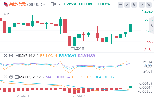 英镑/美元在前两天收于正值区域后继续走高,最后一次交易价格高于1.2650点。
