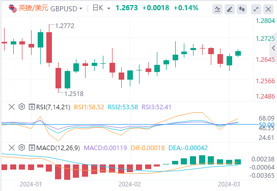 英镑/美元在前一周几乎没有变化后,周一稳定在1.2650以上。