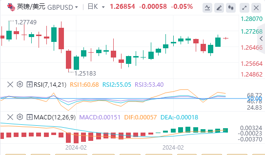 英镑/美元周一连续第二个交易日收于正值区域,但在遇到阻力位1.2700左右后反转方向。周二早盘,该货币对仍处于劣势,并小幅下跌至1.2670。