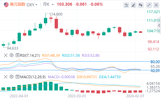 美元指数:截止发稿,美元指数交投于103.306附近。美联储主席鲍威尔在美国国会众议院金融服务委员会作证时指出,美联储认为今年美国经济衰退的风险不会增加。预计这位美国央行行长将在周四美联储半年度货币政策报告的第二天发表进一步评论。技术面上,100日简单移动平均线(SMA)在103.88附近周二被打破,尽管它仍然需要日收盘价高于该水平才能发出看涨信号。如果美元能够突破该目标,104.60将是下一个第一个目标。坚实的一步突破了105.88,这是2023年11月以来的高点。最终,2023年的高点107.20可能会重新回到范围内。
