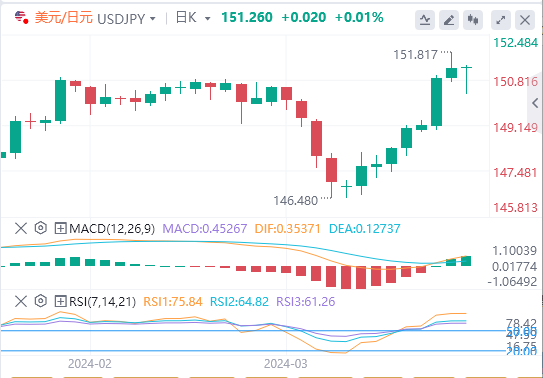 美元/日元聚集看涨势头,周三美国时段一度触及152.00。该货币对在亚洲早盘时段出现深度回调,跌破150.50,随后重拾升势。日本财务大臣铃木俊一当天早些时候表示,他们正以一种紧迫感密切关注外汇市场的动向。与此同时,日本央行行长植田和男表示,他们预计将暂时维持宽松的货币政策。