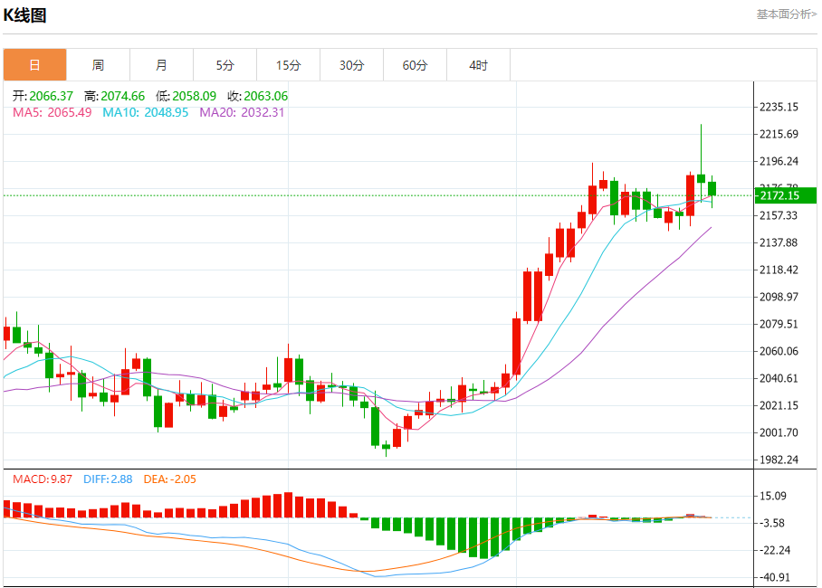 现货黄金:截止北京时间20:23,现货黄金下跌,现报2171.97,跌幅0.42%。纽市盘前,金价在2166.30美元附近徘徊,并仍在上方盘整,注意到随机指标进入超卖区域,等待推动价格恢复预期的看涨趋势,目标主要是2222.86美元,其次是2239.00美元。