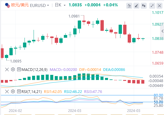 欧元/美元在周二的美国交易时段失去了牵引力,回落至1.0850下方,最终几乎以持平收盘。欧洲早盘,该货币对在1.0800上方窄幅上下波动。