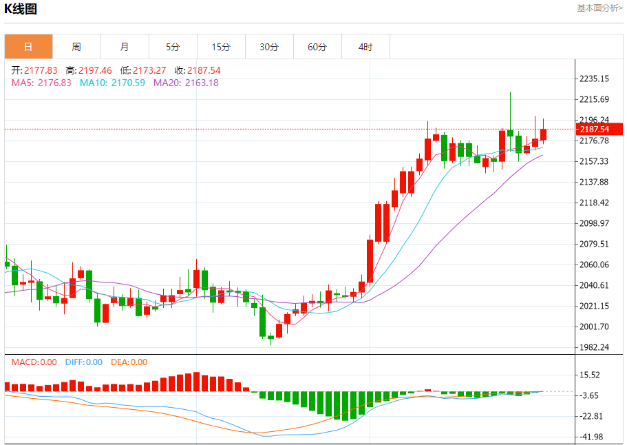 现货黄金:截止北京时间20:25,现货黄金上涨,现报2187.76,涨幅0.42%。纽市盘前,金价稳定在2166.50美元上方。随机指标获得额外的积极动力,等待推动价格恢复今天预期的看涨趋势。