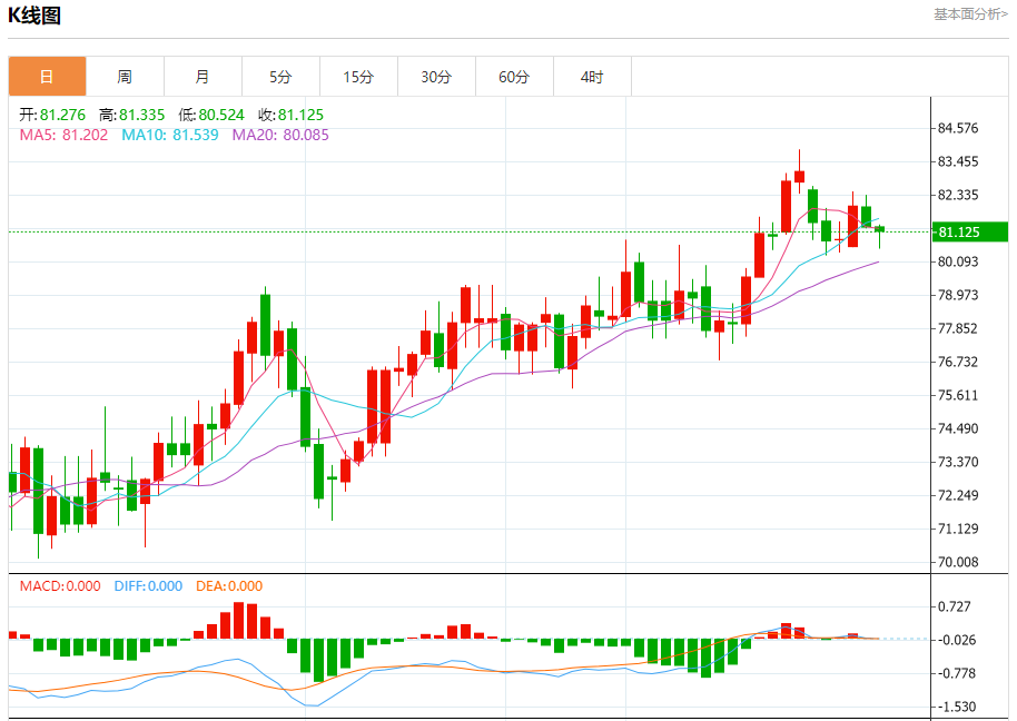 原油市场:截止北京时间20:25,美油下跌,现报81.100,跌幅0.21%。纽市盘前,原油价格显示出额外的看跌倾向,达到双顶形态的颈线80.68美元。等待突破这一水平以激活这一模式的负面影响,随后确认反弹以在即将到来的交易中实现更多的熊市修正。