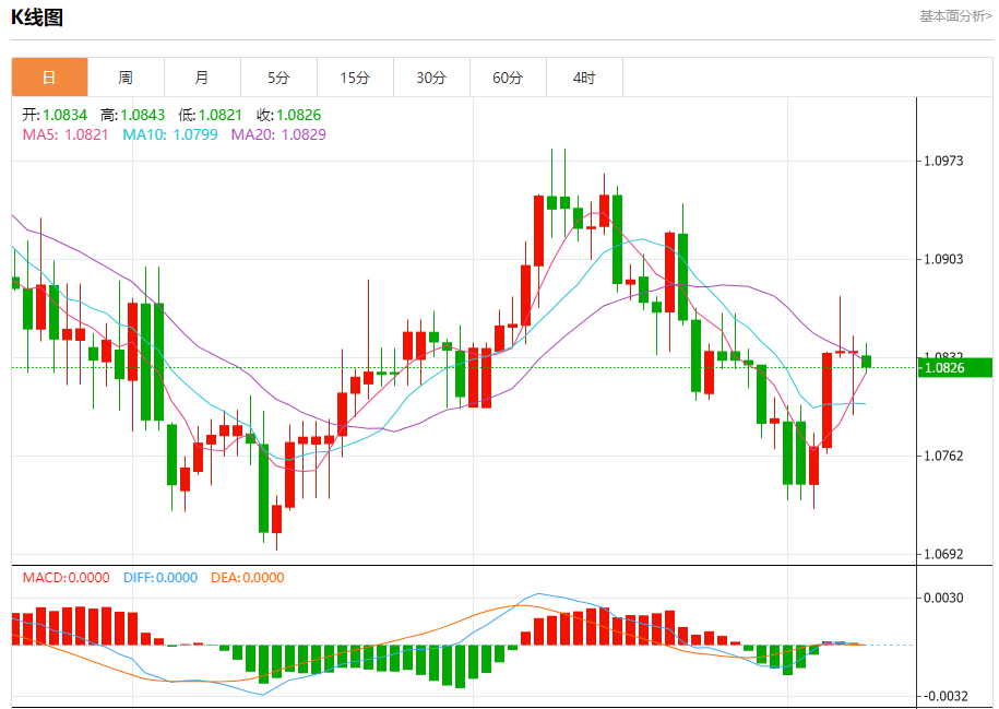 欧元/美元:截止北京时间20:25,欧元/美元下跌,现报1.0826,跌幅0.10%。纽市盘前,自上午以来,欧元兑美元的价格没有显示出任何强劲的走势,继续在1.0840美元左右波动。随机指标继续失去到达超买区域的积极势头。