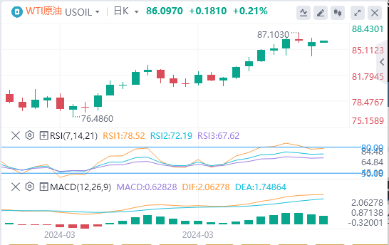 周二亚盘,原油交投于86.09附近。,由于哈马斯拒绝了以色列的停火提议,从盘中低点反弹。与此同时,交易员继续关注伊朗的动向。早些时候,伊朗已承诺对其驻叙利亚领事馆的罢工作出回应。