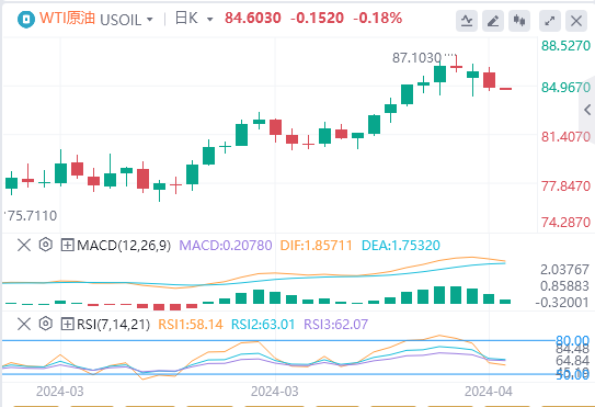 周三亚盘,原油交投于84.60附近。WTI原油随着加沙停火谈判的继续,价格走低。有趣的是,伊朗指出,如有必要,它可以关闭霍尔木兹海峡,但贸易商并没有认真对待这一威胁。