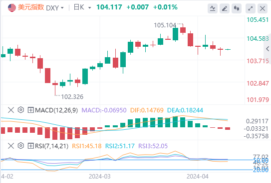 周二,美元指数表现疲软,盘中失守104后迅速反弹,最终收跌0.027%,报104.11。截至目前,美元报价104.117。
