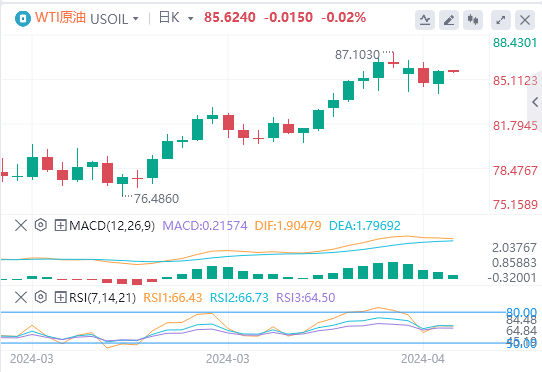 周四亚盘,原油交投于85.62附近。WTI原油尽管EIA报告显示原油库存较前一周增加580万桶,但仍上涨。