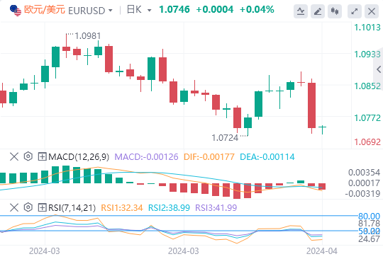 人们普遍预计欧洲央行将维持主要利率不变。政策公布后,欧洲央行行长克里斯蒂娜-拉加德将就政策前景发表讲话,并回答媒体提问。欧元/美元周三跌幅超过1%,最后交易价格略低于1.0750。